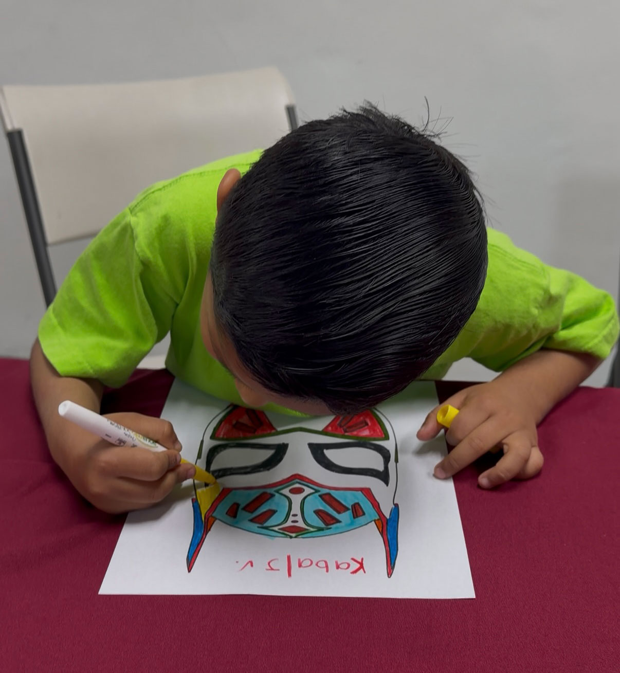 Además, se realizaron dinámicas, juegos y actividades creativas, donde cada niño pintó una máscara y eligió su propio nombre de luchador.